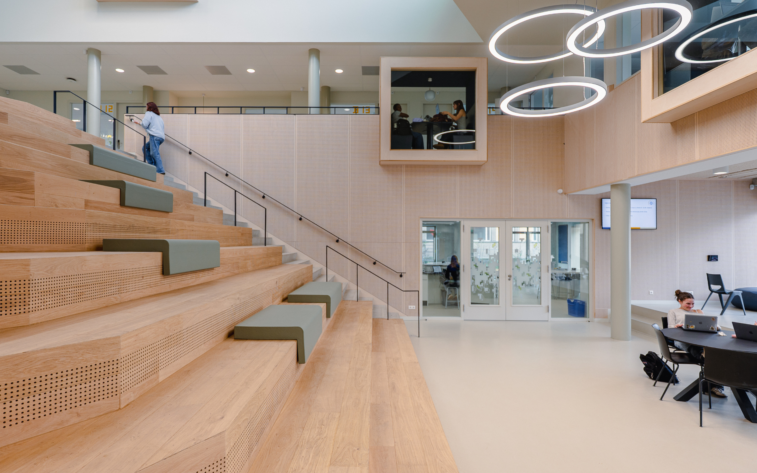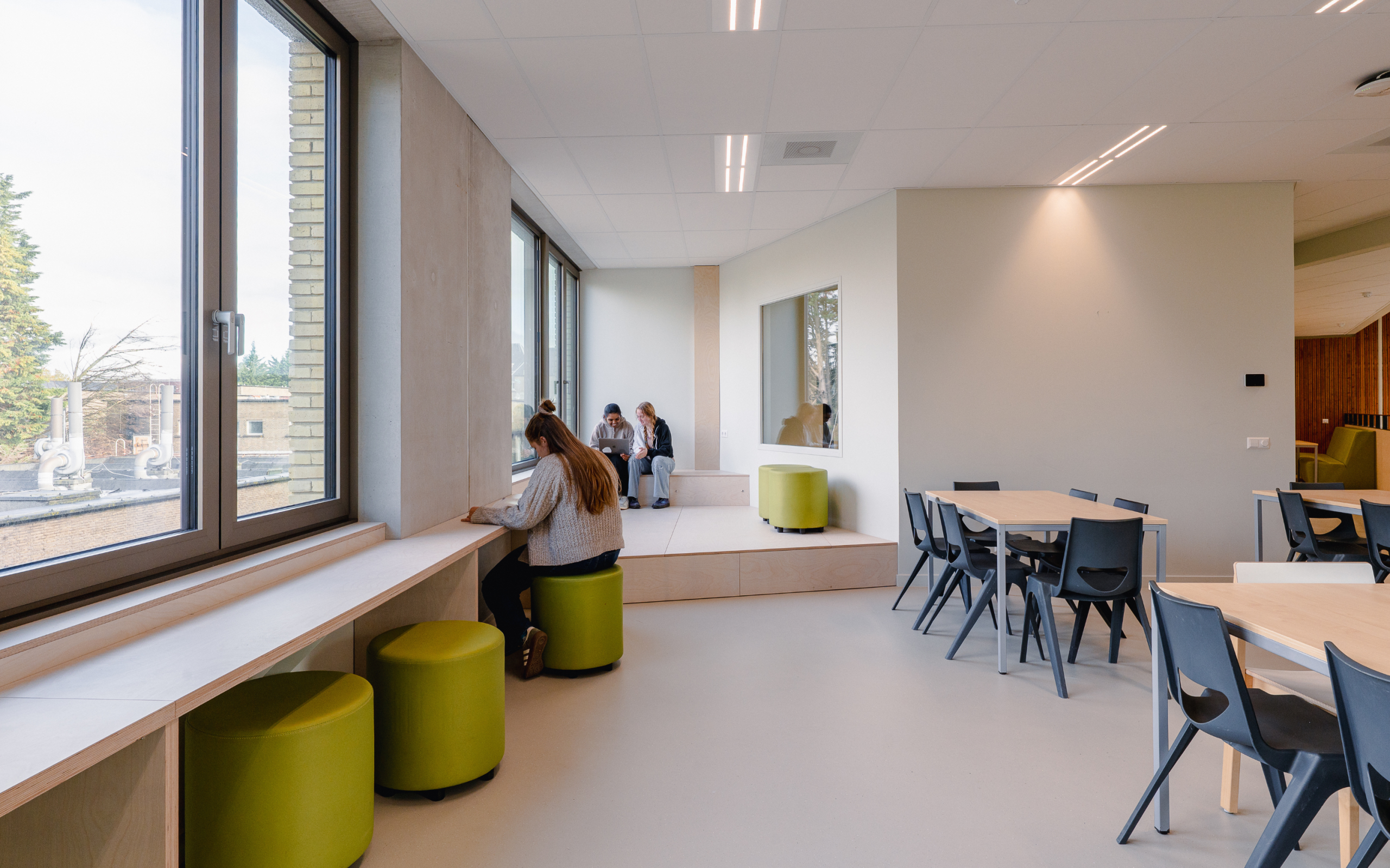 - De school is BENG ontworpen hiervoor wordt er veel aandacht besteed aan luchtdichting en isolatie en worden de daken voorzien van zonnepanelen en er komt een WKO-installatie.