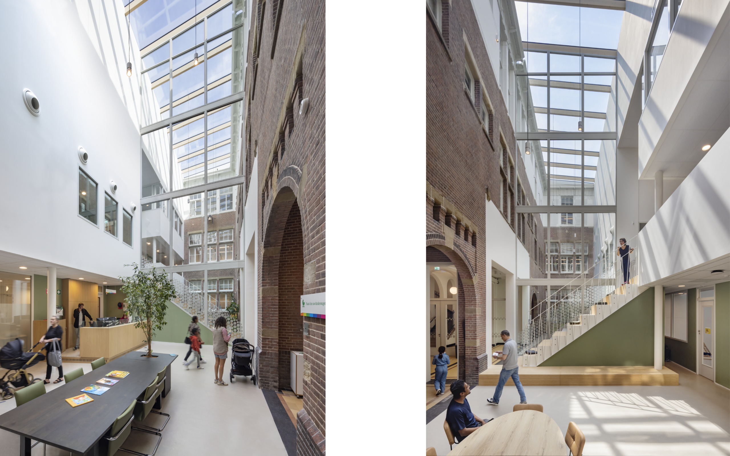 • Een grote lichtstraat ter plaatse van het atrium, dit is ter plaatse van de overgang van het bestaande gebouw naar de nieuwbouw.